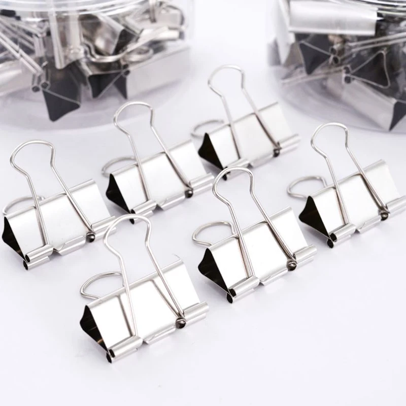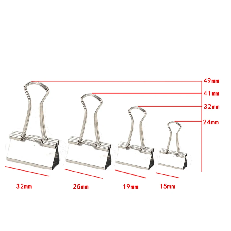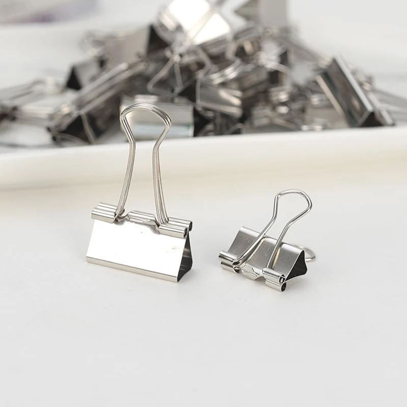 Silver Binder Clips are durable and reliable tools designed for organizing documents in offices, schools, and home workspaces. Made from high-quality metal with a sleek silver finish, these clips provide a strong grip to securely hold papers together. The set includes multiple sizes such as 15mm, 19mm, 25mm, and 32mm, making them suitable for different document thicknesses. The foldback handle design allows for easy opening and closing without damaging the pages. Once clipped, the handles can be folded down to keep papers neat and easy to stack. Ideal for organizing reports, assignments, invoices, and other important paperwork. These binder clips are reusable and built to maintain their grip even after frequent use. Their compact size makes them easy to store in desk drawers, stationery boxes, or office organizers. Perfect for students, teachers, and office professionals who need efficient document management. They can also be used for creative purposes such as organizing cables or sealing small packages. Practical and sturdy, these silver binder clips are an essential stationery item for keeping documents tidy and secure.
