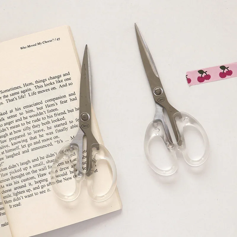 Transparent Handle Scissors are a stylish and practical cutting tool designed for everyday stationery and creative projects. Featuring a clear, minimalist handle design, these scissors add a modern touch to any desk or craft setup. The sharp stainless steel blades provide precise and smooth cutting for paper, photos, and craft materials. Perfect for journaling, scrapbooking, DIY art projects, and general office tasks. The ergonomic handle offers a comfortable grip, allowing for better control during detailed cutting work. Lightweight yet durable, they are suitable for both home and office use. Ideal for students, artists, and professionals who need reliable cutting tools. The compact design makes them easy to store in pencil cases, drawers, or desk organizers. These scissors are also great for decorative projects and soft craft materials. Built for everyday use, they combine functionality with a clean aesthetic design. Whether for creative hobbies or simple office tasks, these transparent handle scissors provide precision, comfort, and modern style.